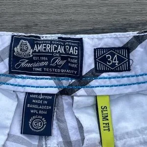 American Rag; White & Black Plaid; Minor/No Wear; SlimFit Cargo Shorts; Waist 34