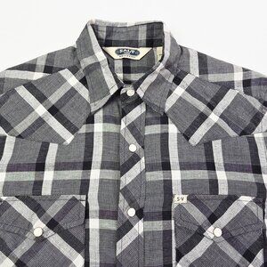 Salt Valley Gray Black White Plaid Size XS Mens Snap Lightweight Flannel Shirt
