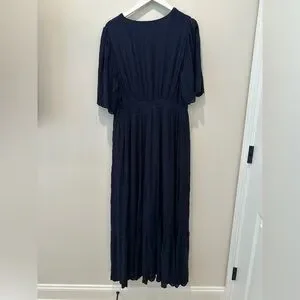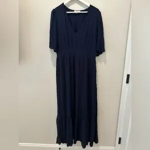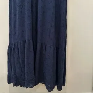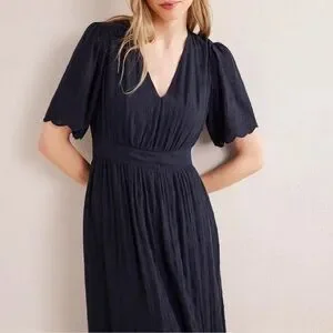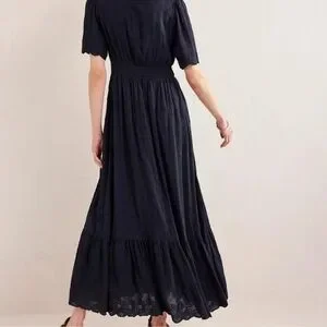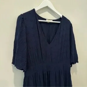 Boden Navy Lace Short Sleeve Maxi Dress Broderie Women’s Size 12 V Neck Long