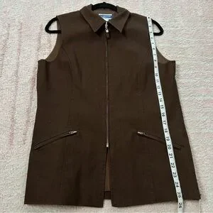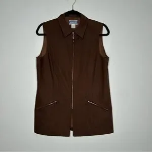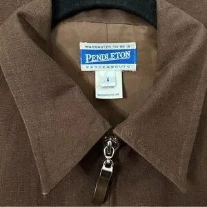 Vintage Pendleton Brown Vest Minimalist Zip Front Size 4 Cotton Linen Blend