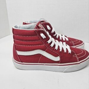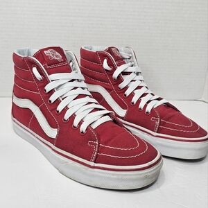 Vans Sk8-Hi High Top Skate Shoes Red Canvas Sneakers Womens Size 8 Lace Up