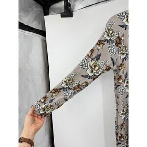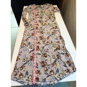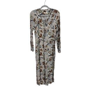 Natural Life Womens Amelia Rose Crinkle Midi Floral Dress Size L Boho Gray
