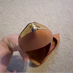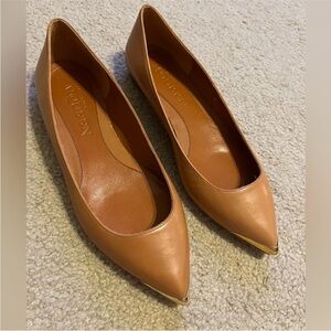 Chic tan leather flats with stylish gold tips. Perfect blend of elegance and comfort.