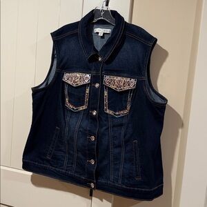 NWOT CATO Denim Vest 18/20W Plus Size Embellished Rhinestone Embroidery Western