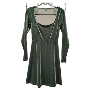 Y2K Style Old Navy Long Sleeve Velvet Dress - Deep Green