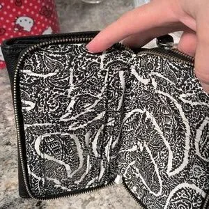 I absolutely adore this bag! It has tons of space. You can use as wristlet or crossbody. Beautiful interior. This bag has never been used. Only reason I am selling is because it is much to small for my needs. And I love it! So I guess I am going to get a Vera Bradley leather tote instead!