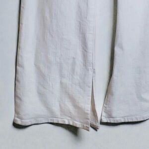 Keywords: white bootcut jeans, high rise denim, curvy fit jeans, split hem jeans