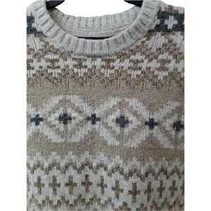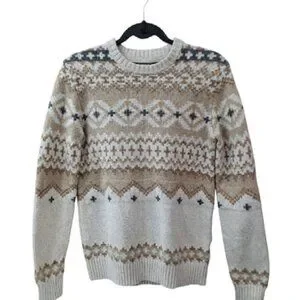 Vintage American Eagle XS Cotton Fairisle Sweater in Neutral Tan Colors