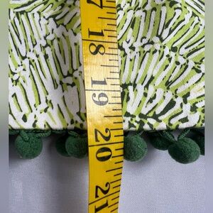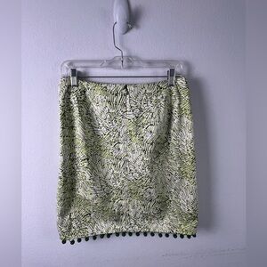 Etcetera green & white pencil skirt with pom pom hem line. Wear to a BBQ with sneakers or dress up with sandals.