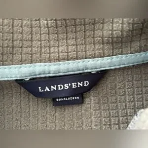 Lands End Women’s Full Zip Mock Neck Zipper Pocket Fleece Windcheck Jacket L