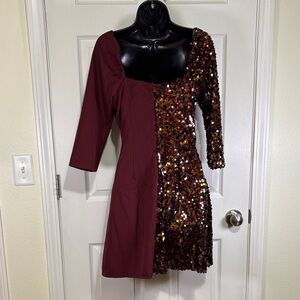 TCEC sequin dress, burgundy party dress, small sequin dress, holiday sequin outfit, sparkly burgundy dress, women’s party dress small, elegant cocktail dress, holiday party dress, formal sequin dress, evening dress small