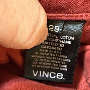 Vince skinny jeans, maroon womenâs denim, size 29 skinny pants, premium designer jeans, burgundy skinny jeans, Vince maroon pants, slim fit denim, modern womenâs jeans, luxury casual wear