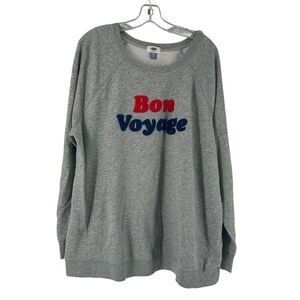 Old Navy Sweatshirt Bon Voyage Size XXL Gray Travel Top Cozy Lounge Cruise Vacay