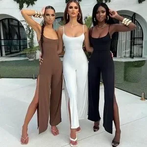 NO.16 Slit long pants skirt with suspender and sexy backless strap jumpsuit