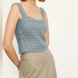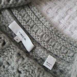 Vince Crochet Knit Sage Women's Top Size M. Preowned. Minor wear. Wool. Cashmere. Elegant Sage knit top perfect for casual outings. Soft and comfortable, ideal for layering or wearing alone. Measurements Included In Pictures. Good Condition. Smoke free home. Offers Welcome.