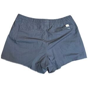 Vuori Drawstring Lounge Shorts, Raw Edge Hem, Charcoal, Women's Size Medium. Features an elastic drawstring waistband, raw frayed hem, front patch pockets, and a zippered back pocket. Comfortable and easy for lounging, travel or casual wear. Charcoal gray. Excellent condition. #LoungeShorts #Athleisure #Travel #Minimalist