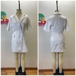 Lorenzo Short Sleeve White Blazer Dress Textured