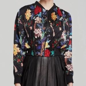 Alice + Olivia Floral Pleated Silk Bomber Jacket size medium