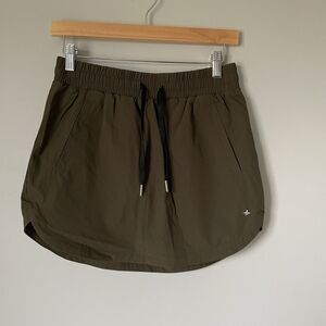 Halara Women's High Waisted Drawstring Pocket 2-in1 Curved Hem Mini Golf Skirt S. Color Twilight Green.