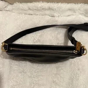 Gorgeous, soft leather crossbody bag with gold-tone hardware and detachable strap. Beautiful ruching on bottom.