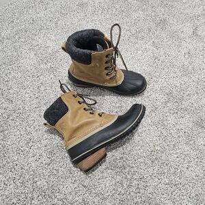 Sorel Women's Slimpack Lace II Snow Boots. Womens size 9. Preowned in good condition, minor scuffs, see photo of heel, slight wear. The latest edition of our legendary Slimpack, this boot has a premium wool felt collar, soft microfleece lining, and rain-defying DNA. The waterproof full-grain leather and seam-sealed construction help you take on the storms while the EVA footbed and 100g of insulation keep you warm and comfortable all day.