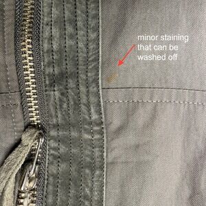 Keywords: SISLEY jacket, parka coat, faux fur trim, hooded jacket, khaki green, winter coat, fall fashion, casual outerwear, military style, utilitarian, warm jacket, zippered pockets