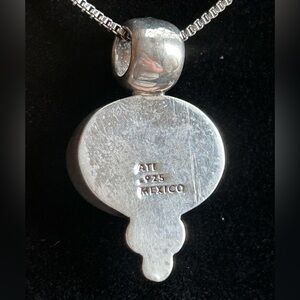 Approximate measurements: pendant 1 1/4” x 3/4”; .925 is stamped on the back of the Pendant, along with the maker’s Hallmark ATI .925 MEXICO to ensure authenticity.