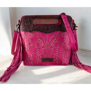 Wrangler Embroidered Fringe Hot Pink Tote/Crossbody *NEW Package*