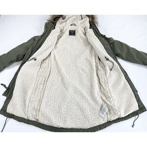 Abercrombie & Fitch Sherpa Lined Long Military Parka Coat Fur Hood Women's S