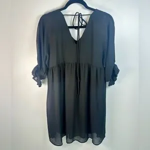 Elegant black dress featuring pink and red floral embroidery. Perfect for any occasion.