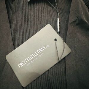 Pretty Little Thing Black Plunge Neck Pleated Party Dress Womens 8 UK12