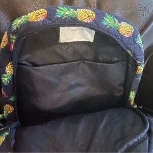 Charming backpack with pineapple design. Features vibrant yellow pineapples on a Navy background. Ideal for everyday use.