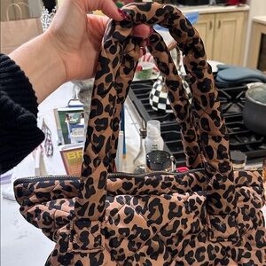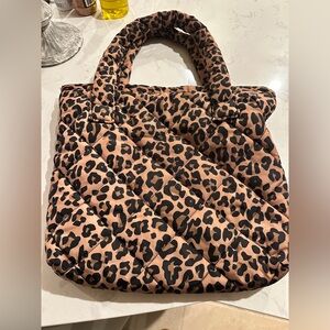 Stylish leopard print quilted tote bag, perfect for any occasion. Features a chic design with comfortable handles.