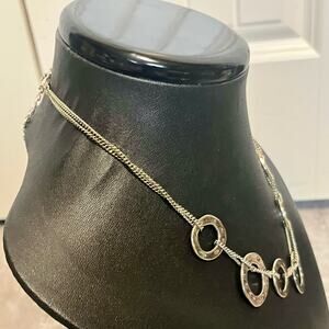 Silver tone necklace bundle, sun and moon, hammered metal, multistrand
