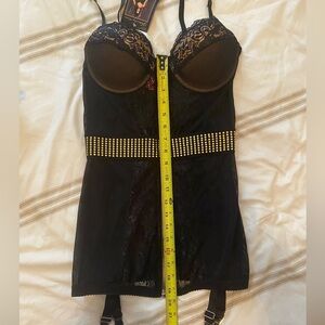 • Attached adjustable garter straps