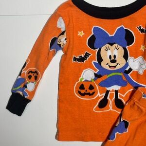 Fun Disney pajama set with Minnie Mouse Halloween theme. Features a playful character design perfect for spooky season. Great pre-owed condition with normal signs of wear. Size 12 months.