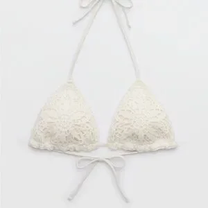 NWT Aerie Cream Crochet Bikini Top The Sun-Lover Crochet Bikini Top size large