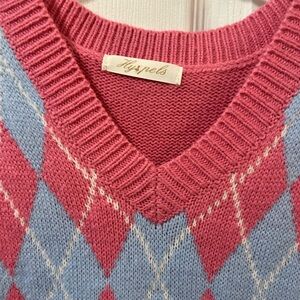 Hyxpels Women's Small Argyle Print Sweater Vest Pink/Blue/White Preppy V-neck