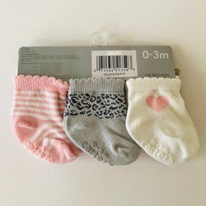 Carter's Baby Girl Newborn 3 Months 6-pk Socks Pink White Tan Heart Cheetah
