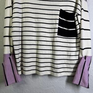 ANTHROPOLOGIE Sweater Medium Faye Striped Block Design Boat Neck Sleeve Cuffs