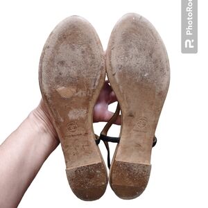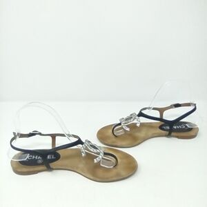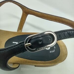 Chanel Size 39 thong sandals CC logo black leather flat Monogram