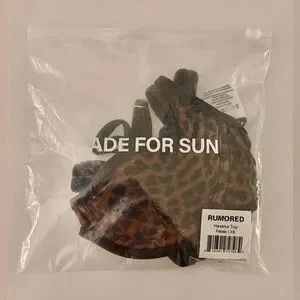 Chic leopard print bikini top by Rumored in the Havana style. Features a flattering underwire bralette silhouette with adjustable straps and a secure back clasp. Structured yet minimal, perfect for beach days, pool lounging, or styling as a summer top.