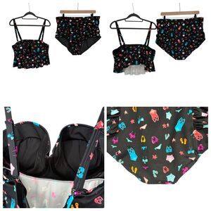 Torrid Swim Set Peplum Push-Up Tankini Top High Waist Ruched Bottom Vixen HTF