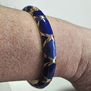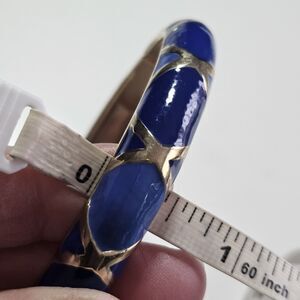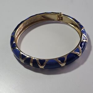 Gold Tone Shades Of Blue Enamel Hinged Bangle Bracelet