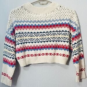 NEW Polo Ralph Lauren Nordic Fair Isle Cotton-Linen Sweater Crop Slouchy Sz XXL