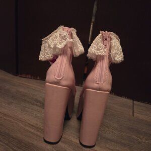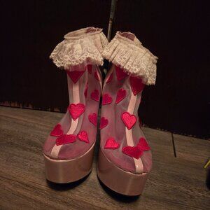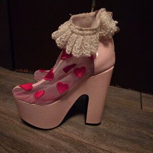 Dollskill pink platform, red heart mesh, frilly lace shoes! Us 6