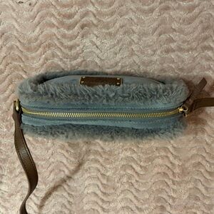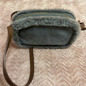 UGG Gray Shearling Fur-Trimmed Small Crossbody Bag with Wallet Card Slots