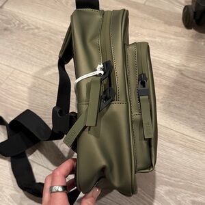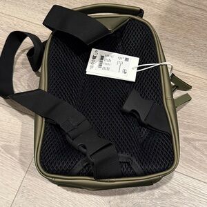 NWT Rains Book Daypack Mini “Revel” Dark Olive Green Weatherproof Crossbody