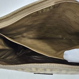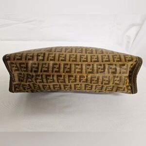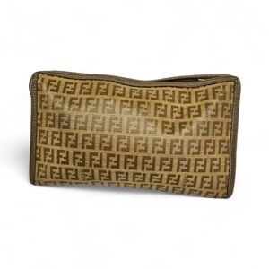 Fendi Zucca Monogram Canvas And Leather Zippered Cluch Bag In Camel And Brown