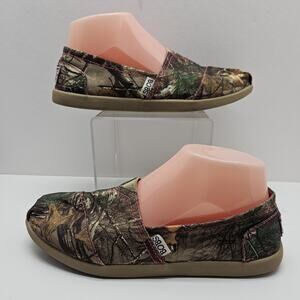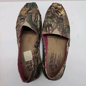Bobs Skechers Womens 7 Shoes Slip On Camo Woods Loafers Leather Soles Canvas